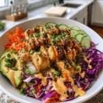 If you have leftovers from your Bang Bang Chicken Bowl – Fast, Flavorful & Customizable, store them in an airtight container in the refrigerator. This meal can last up to three days. When you’re ready to eat, simply reheat in the microwave or on the stove until warmed through. For best results, keep the ingredients separate before storing to maintain their textures and flavors.