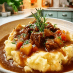 This recipe holds a special place in my heart. It reminds me of family gatherings during harvest season when we would savor hearty meals together. The combination of the stew’s depth and the creamy mashed potatoes creates a comforting experience perfect for cool evenings or festive occasions. You won’t want to miss this culinary delight that promises not just nourishment but also memories to cherish.