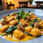 Indulge in the comforting flavors of Creamy Pumpkin Gnocchi with Spinach and Italian Sausage. This dish features tender gnocchi enveloped in a rich pumpkin cream sauce, complemented by savory Italian sausage and vibrant spinach. Perfect for cozy dinners or festive gatherings, each bite is a warm embrace, making it an irresistible choice for pasta lovers.