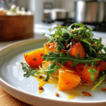The combination of sweet persimmons and peppery arugula creates a delightful contrast that excites the palate. This salad captures autumn’s essence by featuring seasonal ingredients, making it perfect for fall gatherings or cozy dinners at home.