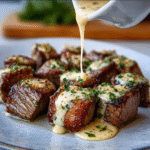 Indulge in the rich flavors of tender steak bites seared to perfection and coated in a velvety garlic butter and creamy Parmesan sauce. This dish is an irresistible option for dinner parties or a cozy night in, promising melt-in-your-mouth bites that everyone will love. Get ready to impress your guests and treat yourself with this delightful recipe.